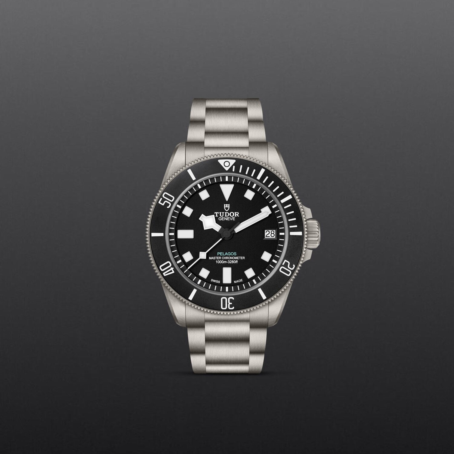 Titanium three-link bracelet with TUDOR “T-fit” folding clasp, safety catch and diver’s extension with new visual indicator system